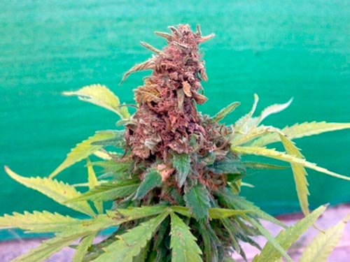 La botrytis se identifica por la presencia de manchas marrones en los cogollos de marihuana. Las flores se vuelven marrones y huelen ligeramente ácidas. Cuando se cosecha, se desmenuza con facilidad y está prácticamente seca.