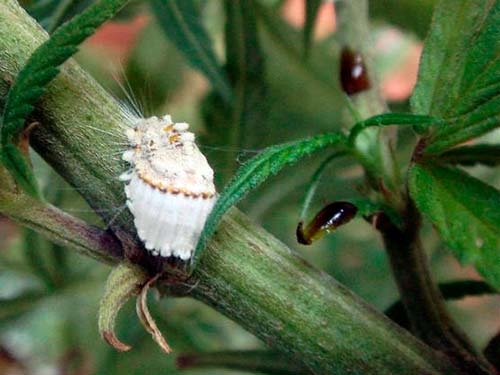 Sin embargo, durante la fase de floración es el momento más probable de que aparezcan, se comen el cogollo por dentro de modo que cuando se cosecha se deshace entre las manos. Un problema añadido a los destrozos que ocasionan es la facilidad con que los cogollos se enmohecen cuando tienen orugas.